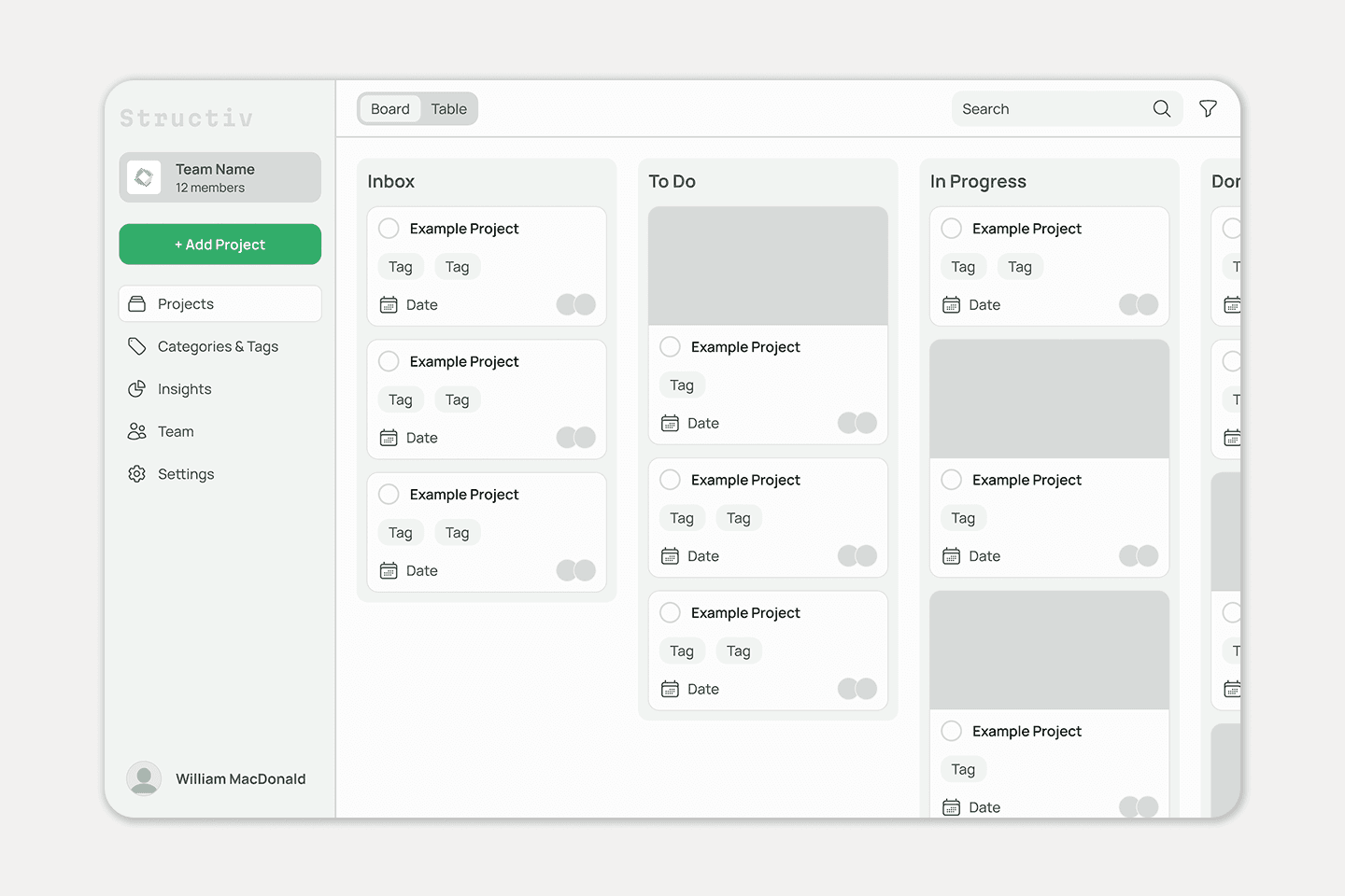Designed a lightweight web app dashboard for small engineering teams to maintain project visibility with minimal setup. Scope covered the dashboard and project creation flow.